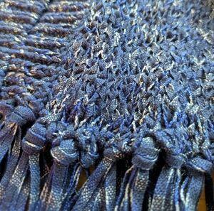 525 America NWT Fringe Cardigan Open Knit Sweater In Navy Combo