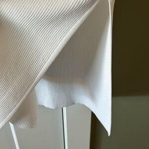 Beautiful white fine ribbed knit with lovely detailed pattern at neckline and sleeves.