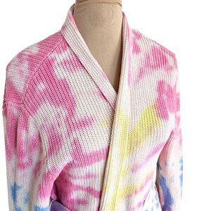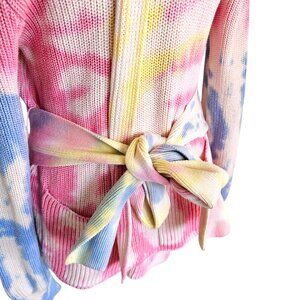 525 America Tie Die Wrap Front Tie Knit Cotton Cardigan Sz XS