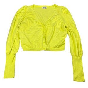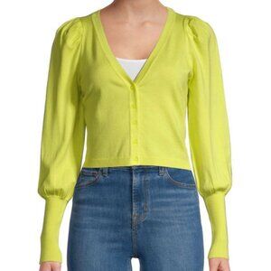525 America V-Neckline Puffed-Sleeve Ribbed Cropped Cardigan Size Large