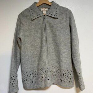 525 America Wool Laser Cut Full Zip Gray Women's Cardigan Sweater Jacket Size M