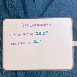 Good used condition. No holes or stains. Slight colour fading near neck shown in pics. Long open front cardigan with pockets. Colour is turquoise blue. Minor pilling in high friction areas. No pulls. Size XS. Measurements in pics.