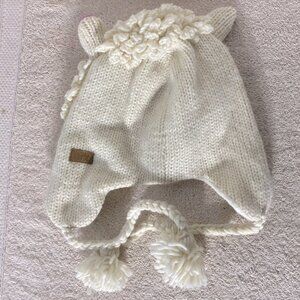 Great used condition. Very gently worn. Minimal signs of wear, see pics. Ivory colour 100% wool. Super cute sheep theme. Fleece lined. Measurements in pics.