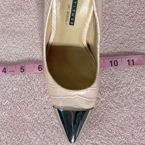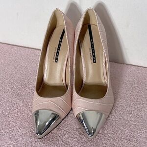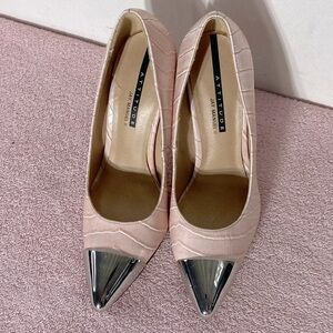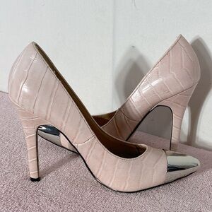 5/$25 Attitude By Jay Manuel Pink Faux Reptile Leather Pumps With Chrome Toes 7