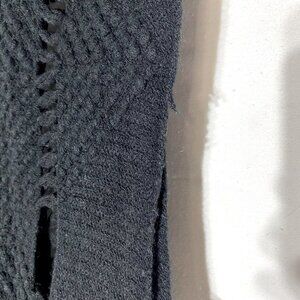 Great used condition. Intentional holes, minimal pilling. No brand or material tags, cannot confirm fabric content. Measurements in pics.