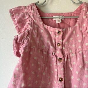 🌼 5/$25 Cat & Jack Girls Pink Polka Dot Button Down Top Flutter Sleeve 6/6X