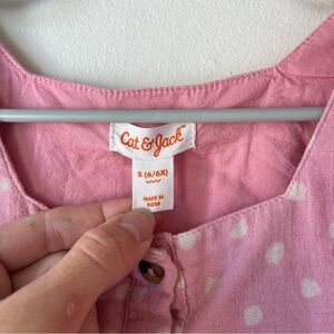 Cat & Jack, girls top, pink polka dots, flutter sleeve, button down shirt, 100% cotton, spring outfit, summer clothes, casual kidswear, cute, playful, lightweight, school outfit, cottagecore kids