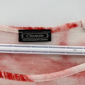 🎁5/$25 Clientele Woman's Shirt Tie Die White with Orange Design 3/4 Sleeve