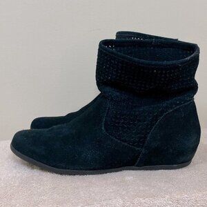 Cougar Black Suede Laser Cut Flat Booties 9.5