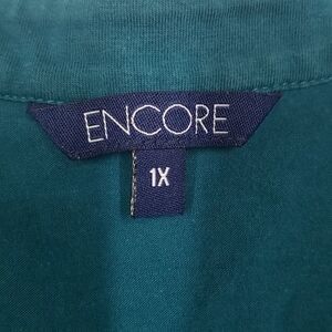 Encore Women's Short Sleeved Top Size 1X, V-neck with nice embroidery design, nice mix of modern and contemporary style. In good condition