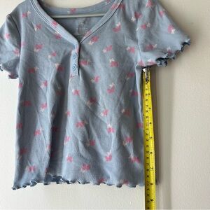 🌼 5/$25 Girls Butterfly Lettuce Hem Ribbed Henley Tee Shirt Size 6 Blue Pink