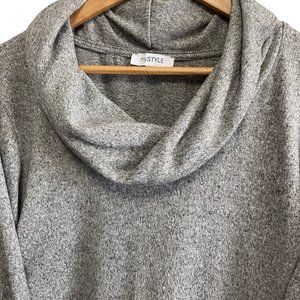 Grey Knit Cowl Neck Sweater w/ Kangaroo Pocket