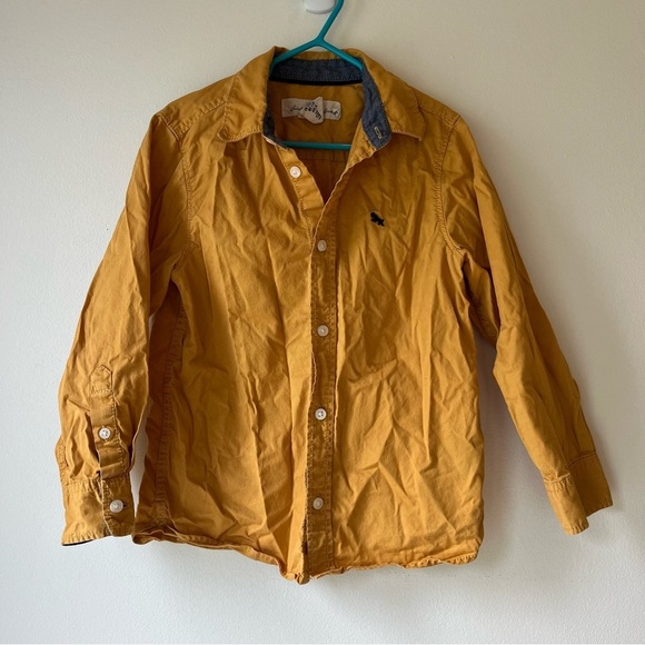 🌼 5/$25 H&M L.O.G.G. Mustard Yellow Boys Button Down Shirt Long Sleeve Size 5-6Y