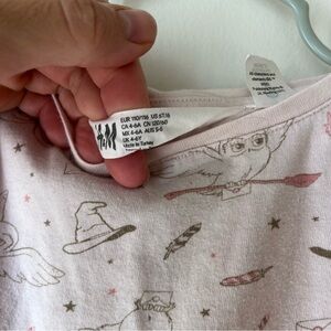 Officially licensed Harry Potter girls’ t-shirt featuring an all-over print of Hedwig the owl, broomsticks, Hogwarts letters, the Sorting Hat, and feathers. Soft blush pink base with charming light brown and pink accents. Size US 5T/6 (EUR 110/116), made from 100% cotton. Slightly longer in the back with a casual fit. Perfect for any young fan of the Wizarding World!