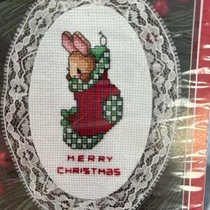 5/$25 Holiday time embroidery stocking and bunny craft kit 🪡