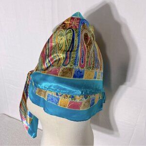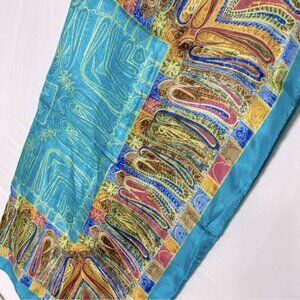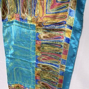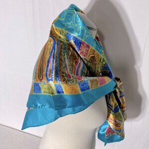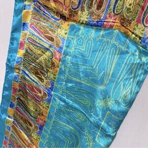 5/$25 Jiaying Blue Yellow Satin Abstract Print Square Scarf