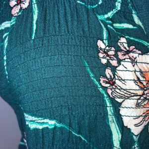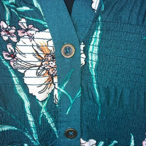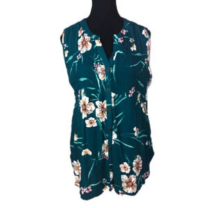 5/$25 Knox Rose Tunic Top Blouse M Green Floral Sleeveless Button Up High Low