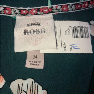 Knox Rose Tunic Top Blouse M Green Floral Sleeveless Button Up High Low Hem NWT
