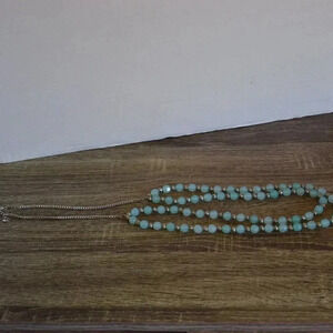 Mint green and silver tone beaded necklace with chain and lobster closure.