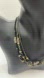 Appears to be gunmetal coloured metal, black beads with Smokey coloured beads. Three strands all attached at the back, two of the strands are metal and one is beaded all the way. Adjustable length with lobster claw closure.