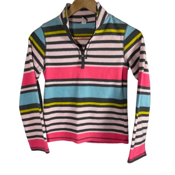 Description: Multicolored Striped Fleece Pullover w/ Zipper Neck Detail