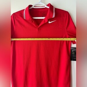 Brand new with tags boys Nike golf polo in a bright red colour. There is the smallest little pick in the fabric but it is otherwise in perfect condition. According to the Nike size chart a boys XL would fit roughly age 13-15 but I’ve included measurement photos .