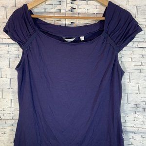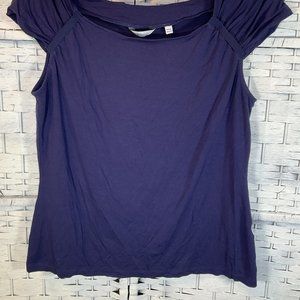 Description: Navy Cap Sleeve Top w/ Ribbon Detail