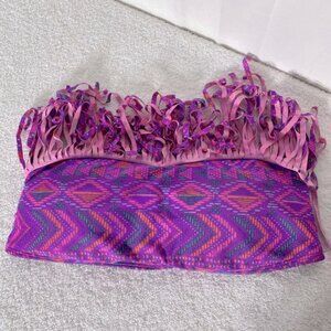 OP Purple and Pink Fringe Bandeau Strapless Bikini Top S