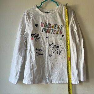 Old Navy, girls graphic tee, kindness shirt, long sleeve top, size 6T, positive message shirt, inspirational tee, doodle graphic, white cotton tee, casual kids clothes, school outfit, layering piece, trendy kids fashion
