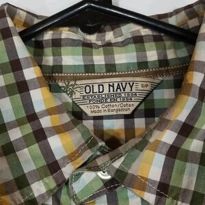 🎁5/$25 Old Navy Shirt Men's Small Button Down Short Sleeve Plaid Office Cotton