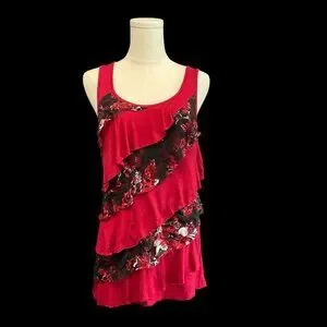 👗5/$25 - Red Ruffle Tank w/ Distressed Lace