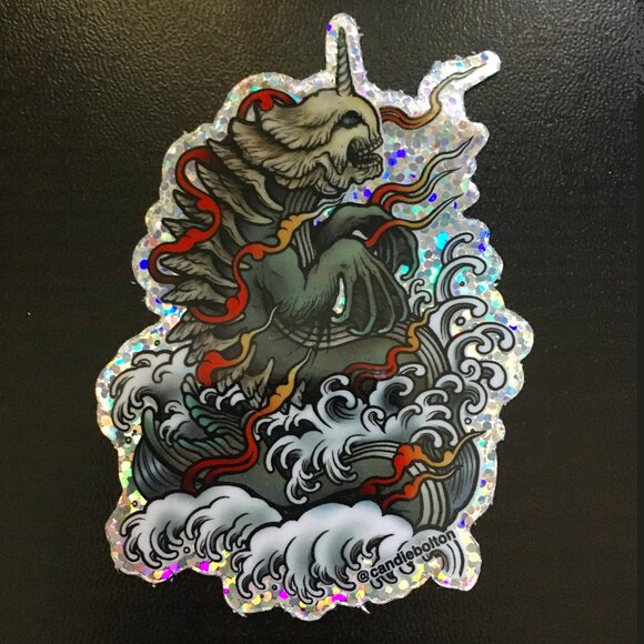 5/$25 Retro Tattoo-Style Bake-Kujira Holo Sticker