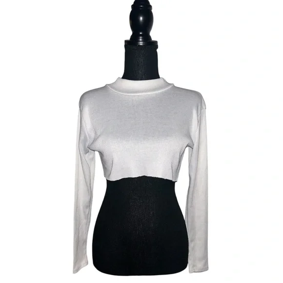 High Neck Ribbed extra Crop Top — Long Sleeves