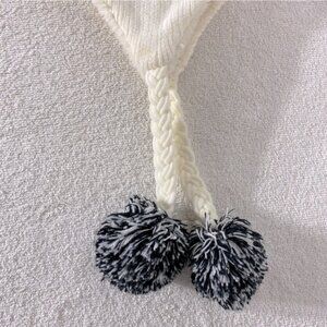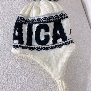 Robin Ruth Jamaica White Black Knit Fleece Lined Hat With Ear Flaps & Pom Pom