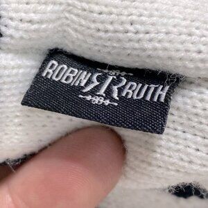 5/$25 Robin Ruth Jamaica White Black Knit Fleece Lined Hat W Ear Flaps & Pom Pom