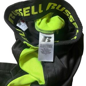 Cool and sporty Russell athletic pants for boys, size XS (4–5). Black with bold neon green colorblocking on the sides and inner waistband. Features an elastic waist for easy comfort and movement. Made of soft, breathable 100% polyester—perfect for active play, gym class, or casual wear.