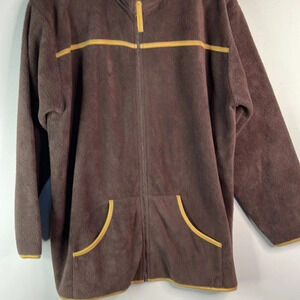 5/$25 STOOKER Fleece Zippered Jacket Dark Brown Contrast Trim Pockets 46 14