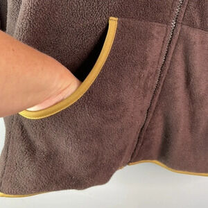 Womens chocolate brown and tan Stooker Full Zippered lightweight pile fleece Jacket.