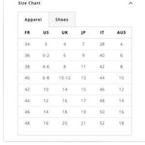 Size 46 FR, 14 -see size conversion chart, and see photo for approximate measurements.