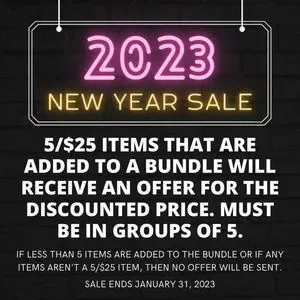 Many items are marked 5/$25 in the title. Add 5 of these items to a bundle, and I'll send you a discounted offer of $25!
