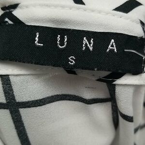 Luna Women's Button Up Shirt Sz S, white and black long-sleeved top. In good condition