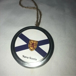 Set of 2 Handmade In Nova Scotia Christmas Tree Ornaments Fabric Mason Jar Lids
