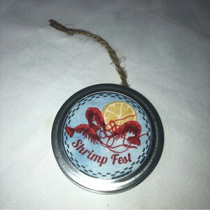5/$25 Set Handmade In Nova Scotia Christmas Tree Ornaments Fabric Mason Lid