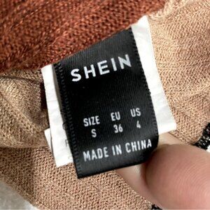 Shein Y2K Tan Brown Exposed Seam Colour Block Short Sleeve Stretchy Crop Top S
