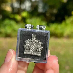 5/$25 Silver pewter cost of arms military pin 15mm VTG