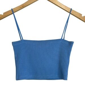5/$25 Subdued Thin Spaghetti Strap Bandeau Cropped Cami Top Ribbed Blue S/4