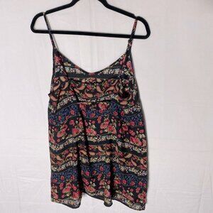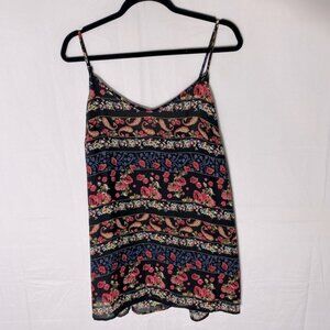 5/$25 Thyme Black Red Multi Floral Front Striped Tank Top Blouse L