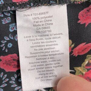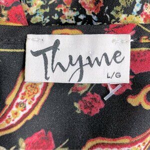 Thyme Black Red Multi Floral Front Striped Tank Top Blouse L