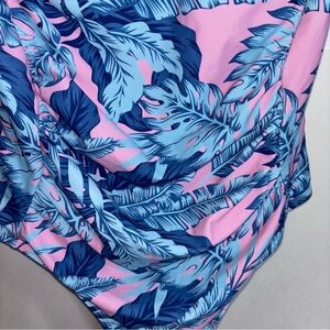 5/$25 Tropical Blue and Pink Women3XL One Piece Swimsuit Tropical Ruched