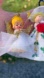 Charming vintage Christmas angel ornaments. Features gold, white, and red colors. Perfect for holiday decor.